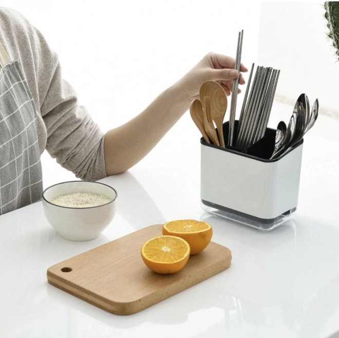 Odkapnik za pribor za sudoper idealno je rješenje ako nemate mnogo prostora oko sudopera. Omogućuje vam pregledno organiziranje kuhinjskog pribora. Ima tri pretinca različitih veličina u kojima se sav pribor nakon pranja osuši. Odkapnik za pribor održava red u svakoj kuhinji. Prozirna baza odkapnika omogućuje kontrolu razine nakupljene vode, a zahvaljujući integriranom izljevnom lijevku možete je brzo izliti. Cijeli se spremnik može lako rastaviti radi čišćenja.