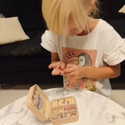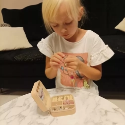 Ovaj kreativni set je idealan izbor za djecu koja vole stvaranje i dizajn. Sadrži mnogo šarenih privjesaka raznih oblika i boja, što daje mogućnost izrade originalnog nakita. Sve je sigurno pohranjeno u prijenosnoj kutiji s patentnim zatvaračem, čime se olakšava prenošenje u školu, prijateljima ili u vrt.