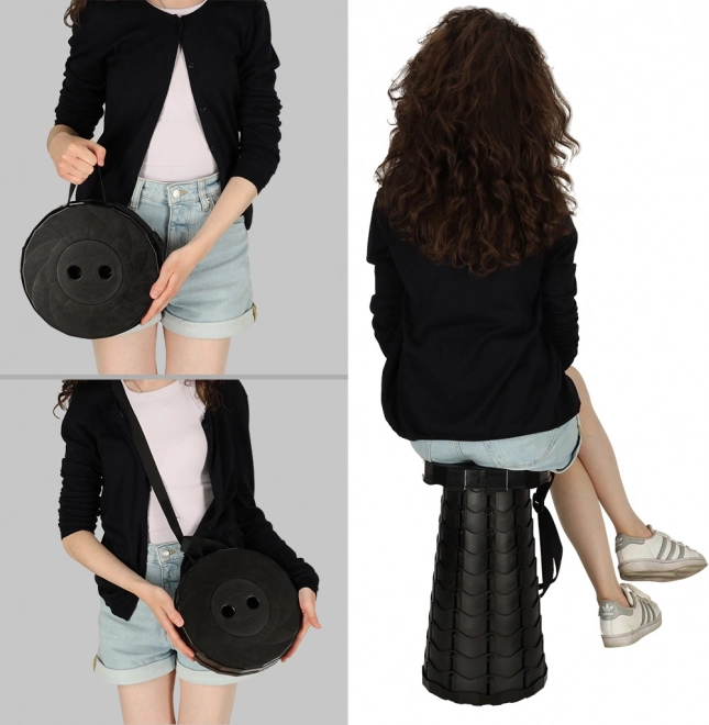 Nakon sklapanja stolica ima oblik ravnog diska. Zahvaljujući remenu i ručki možete je nositi u ruci ili preko ramena te uštedjeti prostor u ruksaku.