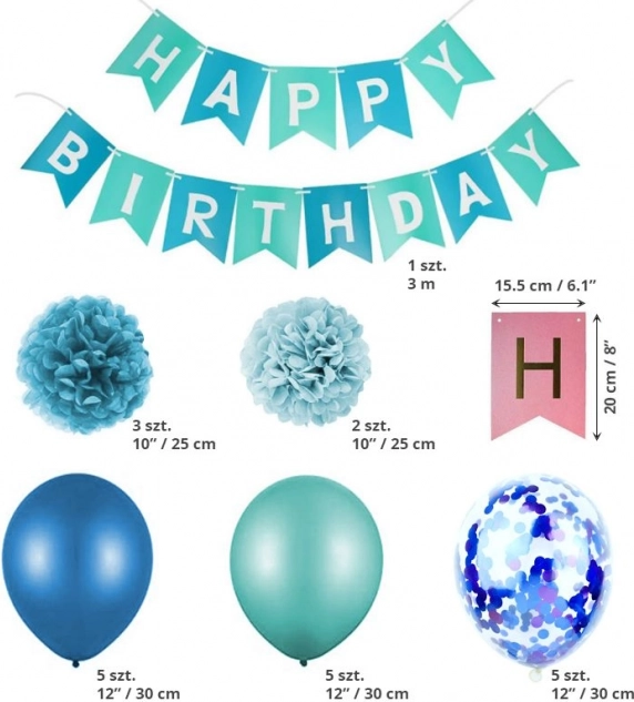 - set dekoracija sastoji se od balona, pompona i girlande “Happy Birthday”,