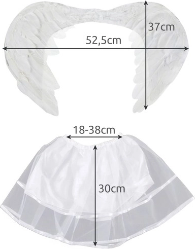 Izvrsni set: Set sadrži dvoslojnu suknjicu na gumu i bijela krila koja vjerno podsjećaju na anđeoska krila. Kvalitetno, nježno perje daje autentičan izgled.