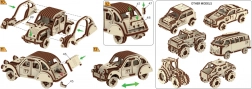 Ovaj model rally automobila nudi privlačnu kombinaciju kreativne zabave i elegantne dekoracije za interijer. Dijelovi od prvoklasne brezine šperploče precizno se uklapaju – bez ljepila i vijaka – a rezultat je impresivan retro automobil s mnoštvom sitnih detalja.
