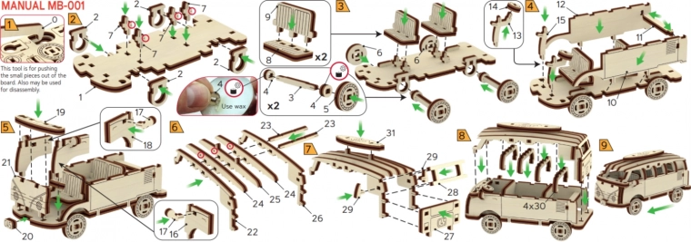 Sastavite vlastiti retro minibuse iz serije Superfast i doživite radost mehanike bez kapi ljepila. Zahvaljujući precizno izrezanim dijelovima od kvalitetne šperploče i priloženom slikovnom vodiču, slaganje je brzo i intuitivno. Gotov model u mjerilu 1:50 ističe se autentičnim detaljima i glatkom vožnjom.