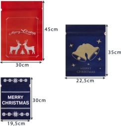 Otkrijte jednostavan i stilski način pakiranja poklona. Ove božićne poklon-vrećice od netkane tkanine čvrste su, lagane i višekratne, pa se savršeno uklapaju u zero waste pristup. Prednju stranu krase motivi sobova, zvončića, božikovine i zvjezdica u bijeloj ili zlatnoj boji.