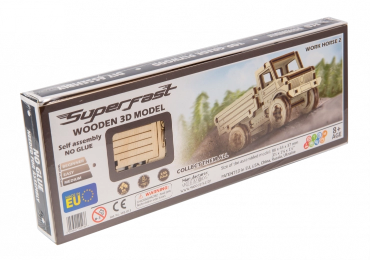 Drvene 3D slagalice WOODEN CITY Superfast teretni kamion idealan su izbor za ljubitelje modela, izrade i tehnike. Sastavljanje je jednostavno i traje otprilike 1 sat, pri čemu se pojedini dijelovi od kvalitetne šperploče precizno uklapaju i drže bez ljepila. Rezultat je funkcionalni mehanički model s glatkim radom i detaljnim izgledom.