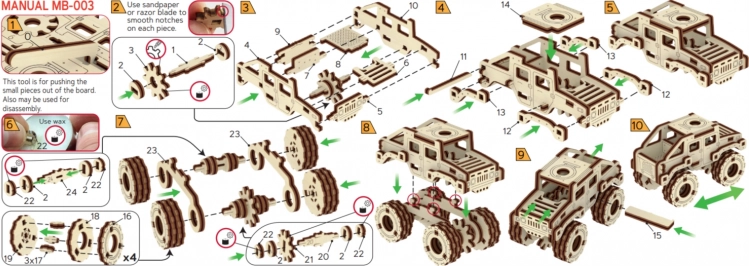 Ovaj model Monster Truck 2 osmišljen je za brzu i ugodnu izradu – bez ljepila, bez nereda, uz maksimalno zadovoljstvo rezultatom. Zahvaljujući preciznim laserskim izrezima dijelovi savršeno prijanjaju i nakon 30 minuta imate gotovo robusno vozilo s velikim kotačima, koje odlično izgleda na polici ili radnom stolu.
