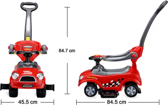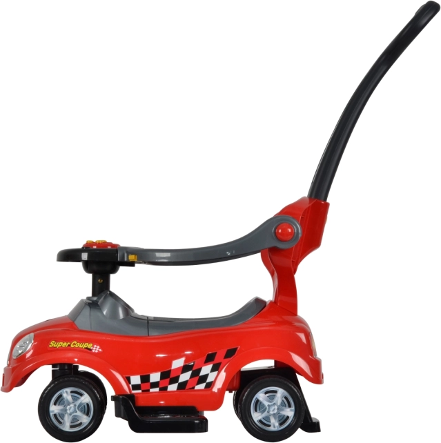Pametno rješenje 3 u 1 donosi tri načina upotrebe: siguran način s zaštitnim ogradama i osloncima za noge za najmlađe, način s ručkom za vođenje za lako upravljanje od strane roditelja te klasična guralica za samostalnu vožnju kada dijete nogama dosegne tlo. Zbog toga je riječ o univerzalnoj igrački koja raste s vašim djetetom i prilagođava se njegovim vještinama.