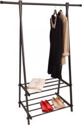 Robustan okvir od praškasto lakiranog metala osigurava dug vijek trajanja i stabilnost. Protuklizna zaštita na šipki sprječava klizanje vješalica, a nožice sa zaštitom štite pod od ogrebotina. Zahvaljujući promišljenim dimenzijama prikladan je za manje prostore, a sastavit ćete ga u nekoliko minuta.