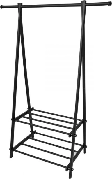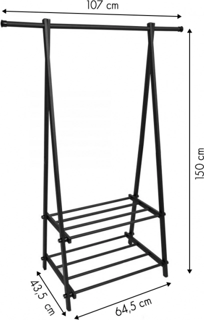 Kompaktan i lagan garderobni stalak pomaže održavati red u odjeći i dodacima. Minimalistički dizajn lako se uklapa u moderne interijere te pruža dovoljno prostora za kapute, košulje i jakne, dok dvije police primaju cipele, kutije ili torbe.