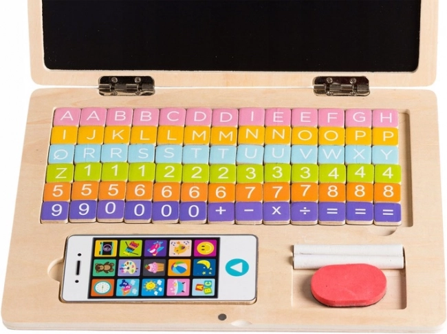 Pružite djeci razigran način učenja s drvenim laptopom ECO TOYS. Zahvaljujući kombinaciji magnetske “tipkovnice” i kredne ploče mogu slagati riječi, jednostavne zadatke, crtati i brisati bezbroj puta. Čvrsta drvena konstrukcija bez oštrih rubova jamči 100% sigurnu i izdržljivu igračku.