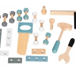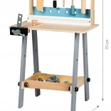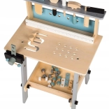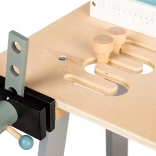 Dio seta je i praktični škripac, radna ploča s rupama i mjerilom te polica za odlaganje alata. Prirodno drvo u kombinaciji s prigušenim bojama izgleda stilski u svakoj dječjoj sobi i potiče kreativnu i imitativnu igru.