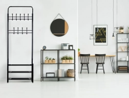 U donjem dijelu stalka nalaze se tri funkcionalne police, na koje možete pohraniti manje komade odjeće, torbice, pa čak i cipele. Stabilna konstrukcija na 4 noge osigurava stabilnost čak i kod većeg opterećenja.