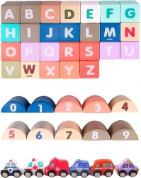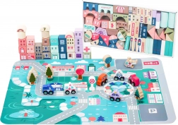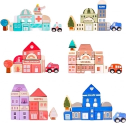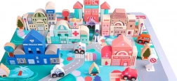 Drvene kocke za djecu stariju od 3 godine idealne su za razvoj manuelnih vještina i prostorne percepcije. Set sadrži 115 elemenata, koji uključuju razne zgrade kao što su hotel, bolnica, banka, policijska stanica, škola i vatrogasna stanica. Svaka zgrada je detaljno dizajnirana i dopunjena odgovarajućim vozilom.