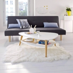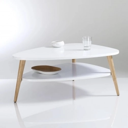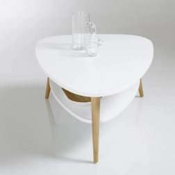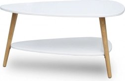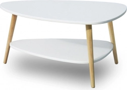Stolić za kavu nudi bijelu ploču s drvenim nogama i donjom policom za veći prostor za odlaganje.