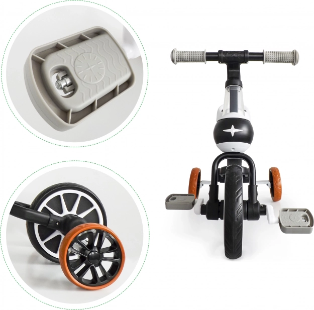 Pedale se mogu jednostavno priključiti ili odvojiti, što značajno mijenja karakter igre i potiče rast samopouzdanja djeteta pri učenju vožnje bicikla.