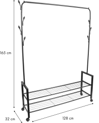 Samostojeća vješalica od ModernHome izvrsno je rješenje za svakoga tko nema dovoljno prostora za vješanje odjeće bez potrebe za ormarom. Zahvaljujući izdržljivim kotačićima lako se premješta bez potrebe za velikim naporom.