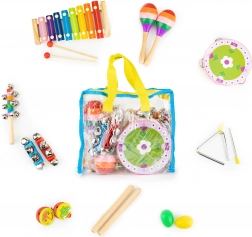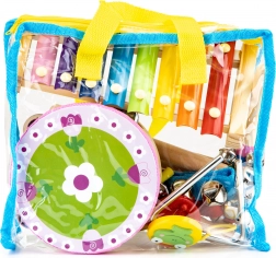 Otkrijte radost glazbe s raznolikim setom od 14 instrumenata koji će zabaviti cijelu obitelj. Djeca upoznaju ritam, tonove i melodije te istodobno vježbaju finu i grubu motoriku. Prozirna torba s ručkom omogućuje da su svi instrumenti uvijek zajedno i spremni za putovanja i vrtić.