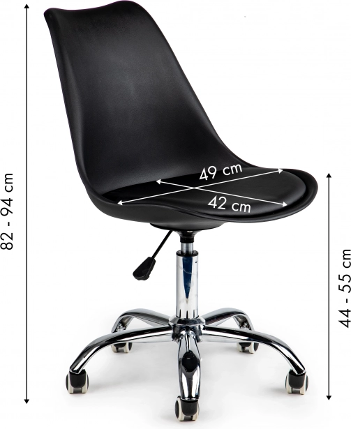 UDOBNOST U VLASTITOM UREDUZa učinkovito obavljanje posla za stolom potrebna vam je stolica koja omogućuje udoban rad za računalom kroz dulje vrijeme. Okretna stolica ModernHome je idealno rješenje za urede, kućne radne prostore ili recepcije u tvrtkama. Crna boja s kromiranim detaljima savršeno će se uklopiti u moderne interijere. |