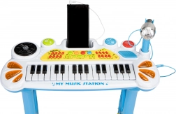 Dječja glazbena stanica pretvara sobu u mali podij. Klavir na stabilnom stalku sa stolicom na udobnoj visini podupire pravilno sjedenje i dulje sviranje. Zahvaljujući ugrađenom držaču za telefon, reprodukcija omiljenih pjesmica je jednostavna i motivira djecu na otkrivanje ritma i melodija.