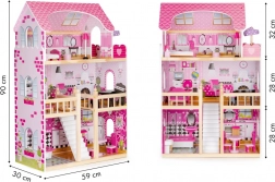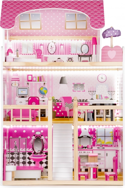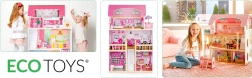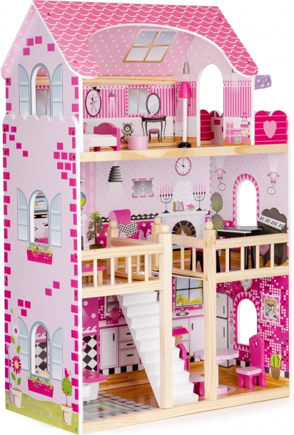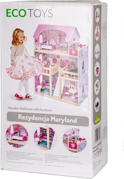 Kućica za lutke ECOTOYS dizajnirana je za kreativnu igru i razvoj dječje mašte. Sastoji se od tri neovisne razine s ukupno pet prostorija, koje savršeno oponašaju pravi dom. Svaka prostorija opremljena je namještajem i dekoracijama koje se lako mogu pomaknuti prema željama djeteta.