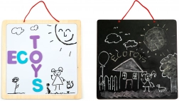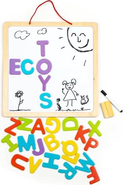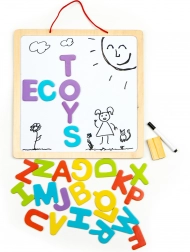 Nastavna 3u1 magnetska ploča brenda ECOTOYS namijenjena je djeci od 3 godine. Kombinacija tradicionalne crne ploče i bijele ploče za flomastere omogućuje djeci crtanje i učenje riječi pomoću magnetskih slova. Robusna drvena konstrukcija jamči izdržljivost i sigurnost tijekom igre.