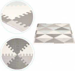 Matirani trokutasti dijelovi s 'zubima' omogućuju promjenu oblika podloge u bilo kojem trenutku. Debljina 0.9 cm pruža savršenu zaštitu pri padu i ugodnu mekoću pri korištenju.