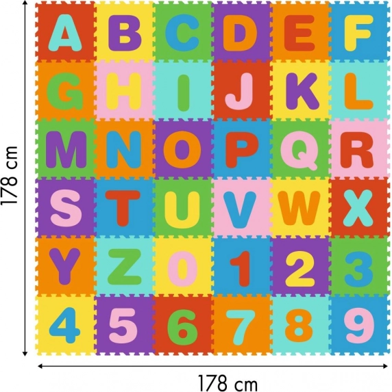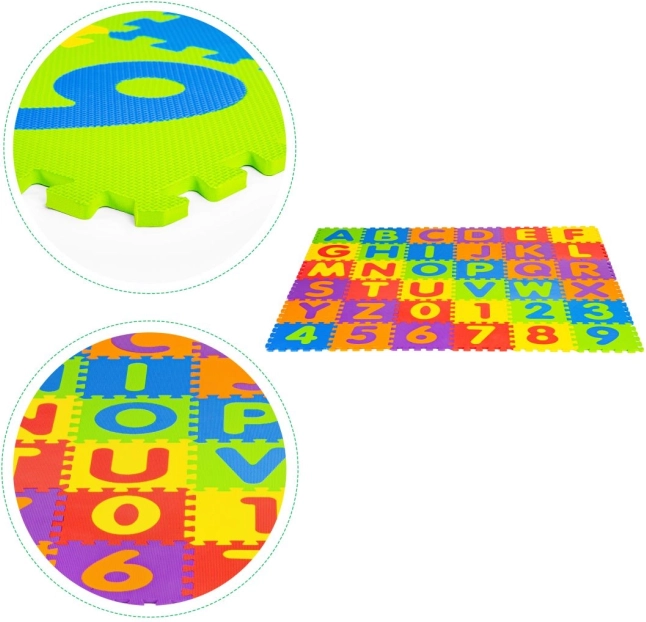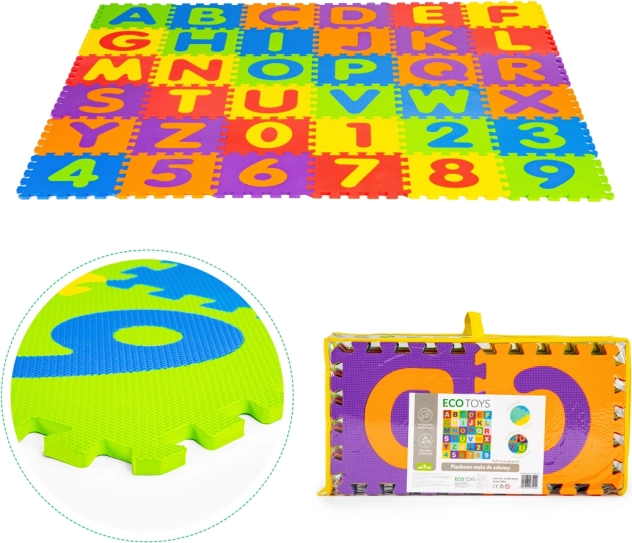 Budući da se podloga spaja kao slagalica, iz nje se mogu sagraditi tornjevi, kocke i druge konstrukcije koje vaše dijete zamisli. Svako slovo i broj može se izvaditi iz kvadrata, pa se možete zabavljati slaganjem riječi, računanjem ili igrom sparivanja oblika.