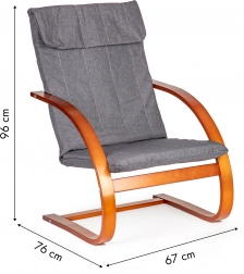 Ljuljačka fotelja ModernHome kombinira moderan dizajn nadahnut kultnim modelima prošlosti, što je čini idealnim komadom namještaja za klasične i moderne interijere. Njezina je konstrukcija izrađena od savijene brezove šperploče, što jamči visoku izdržljivost i ekološku prihvatljivost.