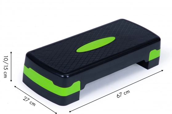 Izdržljiva ojačana plastika osigurava dug vijek trajanja i pri redovitoj uporabi. Kompaktne dimenzije 67 × 27 cm omogućuju jednostavno skladištenje kod kuće i u manjim prostorima. Odlično za aerobik, HIIT, rehabilitacijske vježbe i treninge s rekvizitima (bučice, kettlebell, elastične trake).