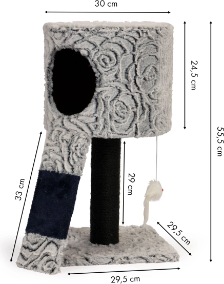 Grebalica je visoka 120 cm i dizajnirana je s maksimalnom zabavom i udobnošću za vašu mačku. Nudi četiri razine igre i tri promatračke platforme koje pomažu održati vašu mačku aktivnom i stimuliranom. Sa svakim stupom prekrivenim jakim sisalovim užetom idealna je za grebanje i penjanje.