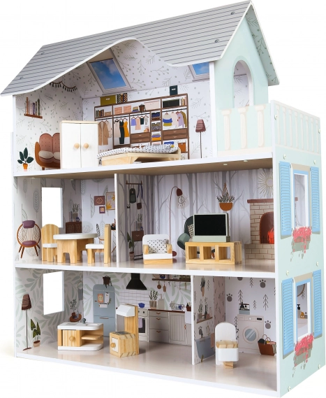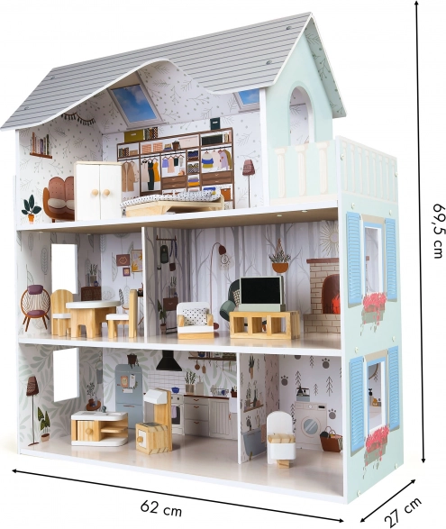 Kučica za lutke Residence Emma od ECOTOYS-a idealan je poklon koji će osvijetliti ne samo dječju sobu, već će očarati i cijelo kućanstvo. Njegove nježne i ugodne boje uklapaju se u svaki interijer. Kuća je dizajnirana za igru s većim lutkama i nudi prostrane prostorije za slobodno igranje.