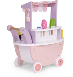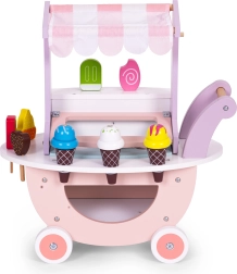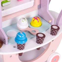 Presladak drveni kolica-štand za sladoled ECOTOYS pretvara svaku dječju sobu u mali dućan. Djeca isprobavaju ulogu prodavača, razvijaju maštu i finu motoriku dok se igraju s setom od 12 dijelova izrađenim od sigurnog drva u pastelnim bojama. Magnetne kuglice i žličica čine igru još zabavnijom, a stabilna konstrukcija bez oštrih rubova osigurava sigurnost za djecu od 3 godine.