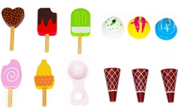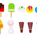 - Kolica, 5 sladoleda na štapiću, 3 korneta, 3 kuglice sladoleda, žličica