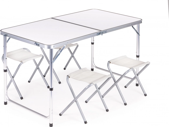 Lagan sklopivi stol i četiri izdržljive stolice s čeličnom konstrukcijom. Idealno za kampiranje, piknike, festivale i vrt.