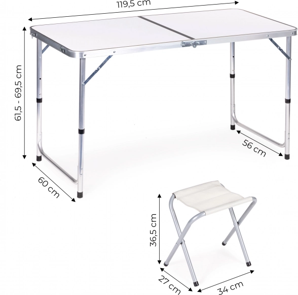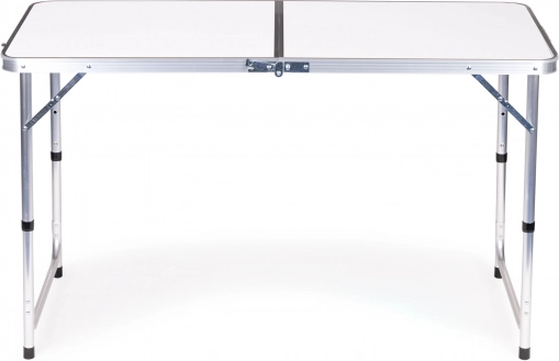 Uživajte u udobnom blagovanju u prirodi. Prostrana ploča u mat bijeloj boji lako se održava i udobno prima do 4 osobe. Podesiva visina 61,5–69,5 cm osigurava komfor uz jutarnju kavu i zajednički ručak. Sigurnosna brava štiti od neželjenog sklapanja, a stabilna metalna konstrukcija pruža sigurnost na terenu.