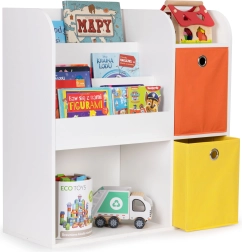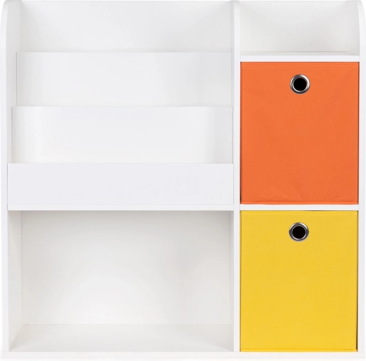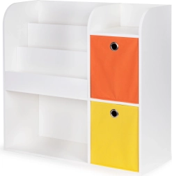 Namještaj je izrađen od izdržljive iverice i površinski obrađen furnirom otpornim na oštećenja. Duboki pretinci primaju vaše omiljene knjige, albume, bojanke i časopise, a police su idealne za odlaganje igračaka. Set dodatno uključuje 2 prostrane tekstilne košare, savršene za kocke i ostale dodatke.
