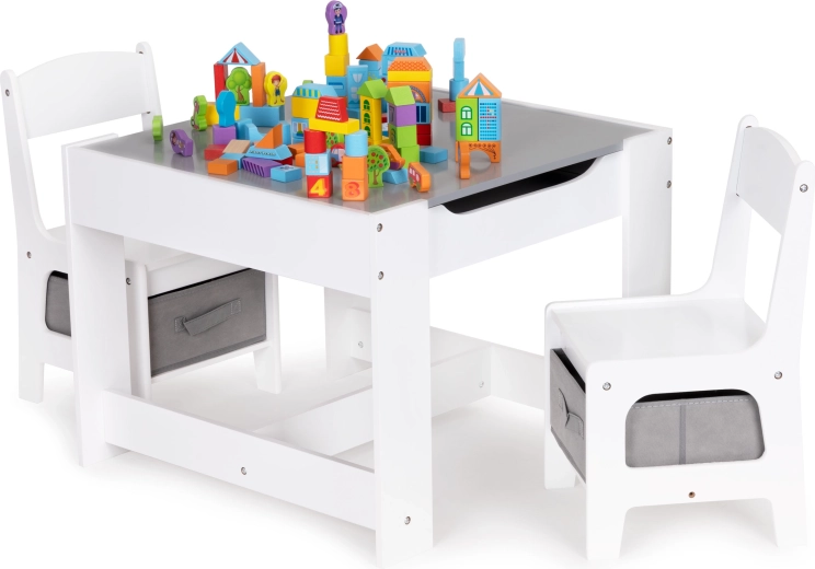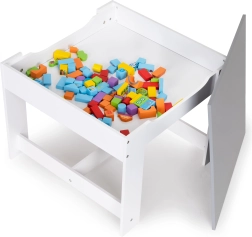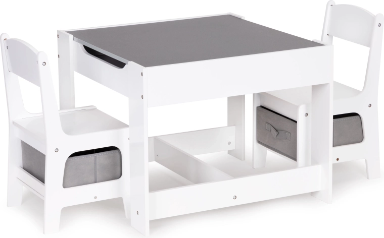 Stol će odlično poslužiti kao mjesto gdje će mali umjetnici stvarati umjetnička djela, graditi igračke od kockica i raditi mnoge druge kreativne stvari. Nakon igre sav pribor može se spremiti ispod ploče stola ili u košare ispod sjedala, tako da je uvijek pri ruci i spreman za upotrebu.