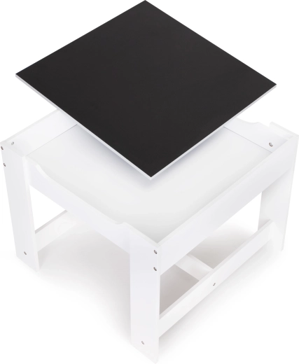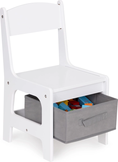 Ispod ploče stola skriva se prostor koji pomaže održavati red i potiče naviku pospremanja nakon igre. Pretinac prima kocke, manje igračke i druge sitnice koje je korisno imati pri ruci.