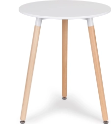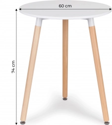 Elegantni okrugli stol u nordijskom stilu idealan je izbor za manje prostore, kafiće ili čekaonice. Mat bijela MDF ploča s izdržljivom površinskom obradom lako se čisti, a njezini zaobljeni rubovi bez oštrih bridova povećavaju sigurnost i udobnost svakodnevne uporabe.