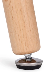 Robusne bukove noge povezuje čvrst metalni okvir koji osigurava stabilnu konstrukciju. Podesive protuklizne podloške štite pod od ogrebotina i omogućuju precizno izravnavanje stola. Minimalistički izgled i bezvremenski materijali čine ga praktičnim i stilskim komadom namještaja za široku primjenu.