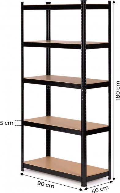 Polica sadrži pet izdržljivih polica, svaka s kapacitetom do 150 kg. Zahvaljujući centralnom spoju, osigurana je čvrstoća konstrukcije.