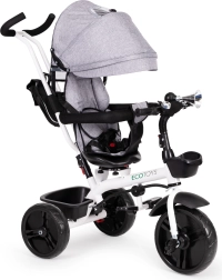 Tihi i izdržljivi EVA kotači ne zahtijevaju pumpanje. Sklopive oslonce za stopala, podesivi krović, košarice i torbica povećavaju udobnost djeteta i roditelja.