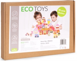 Svaki je element izrađen od kvalitetnog drva, obojen netoksičnim, ekološkim bojama i ima glatke, sigurne rubove. U kompletu je i praktična tekstilna vrećica za jednostavno spremanje i prenošenje kocaka.
