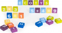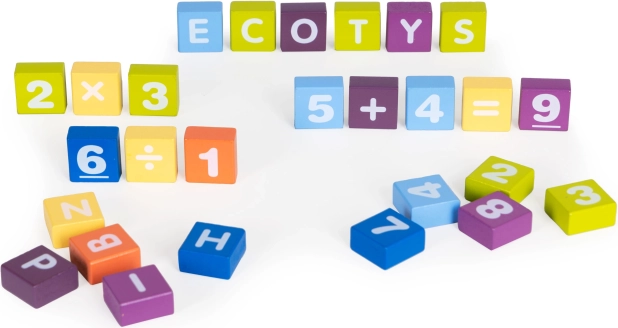 Zahvaljujući otisnutim slovima, brojkama i simbolima, djeca nenametljivo usvajaju osnove abecede i matematike tijekom izgradnje svojih prvih konstrukcija.