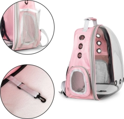 Ovaj ruksak-transporter pruža vašem ljubimcu maksimalnu udobnost i sigurnost na putovanjima. Prednji transparentni panel omogućuje životinji promatranje okoline, dok izdržljivi materijali i unutarnja sigurnosna kopča drže sve pod kontrolom. Više ventilacijskih otvora i mrežasti paneli jamče stalni dotok svježeg zraka.
