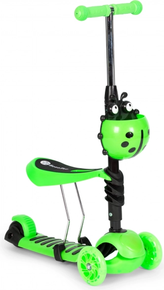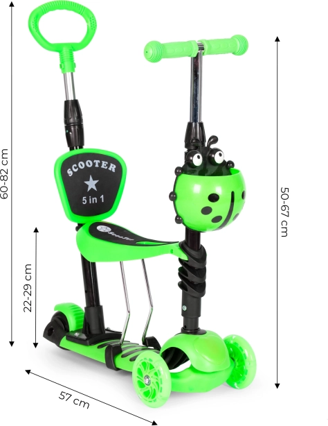 Kolica su opremljena ručkom za guranje, idealnom za malu djecu koja još nisu u stanju samostalno voziti. Osvijetljeni kotačići ne samo da stvaraju nevjerojatan efekt, već također povećavaju vidljivost, čime donose dodatnu sigurnost pri vožnji u sumrak. Protuklizna platforma osigurava sigurnu stabilnost, smanjujući rizik od pada.