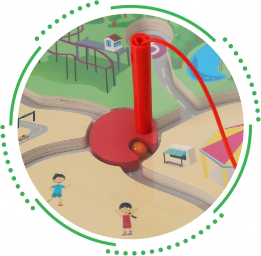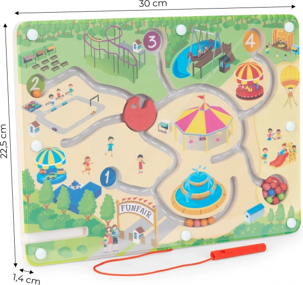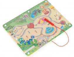 Ova šarena edukativna igračka donosi djeci svijet atrakcija na jednu ploču. Zahvaljujući magnetičnoj olovci male ruke pomiču kuglice po sigurno zatvorenim stazama, uče strpljenje, koncentraciju i koordinaciju ruka–oko. Numerirani i bojama označeni ciljevi intuitivno navode djecu na rješavanje zadataka.