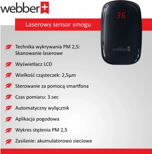 WEBBER SP75 je mala, ali vrlo precizna stanica za praćenje čestica prašine u zraku. Zahvaljujući laserskoj metodi mjerenja spada među najtočnija rješenja za nadzor kvalitete zraka u stvarnom vremenu. Na preglednom zaslonu odmah ćete vidjeti aktualne koncentracije, a putem Bluetootha prenijeti podatke u aplikaciju.