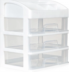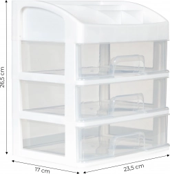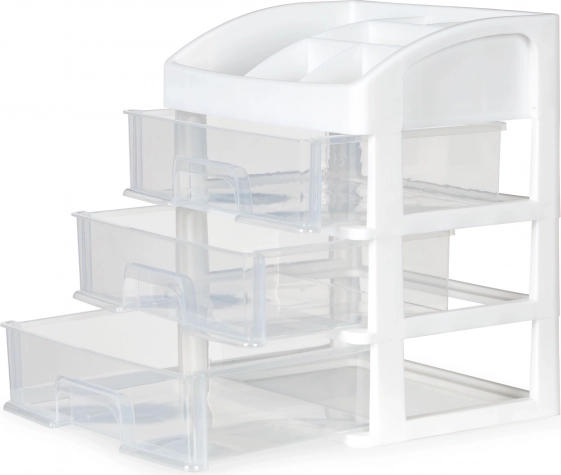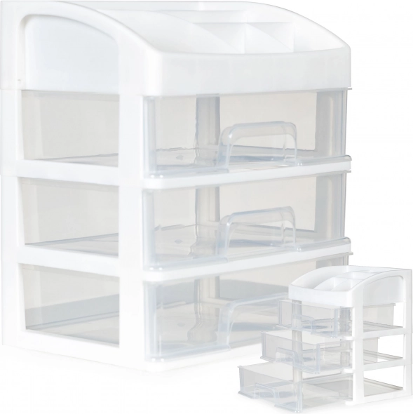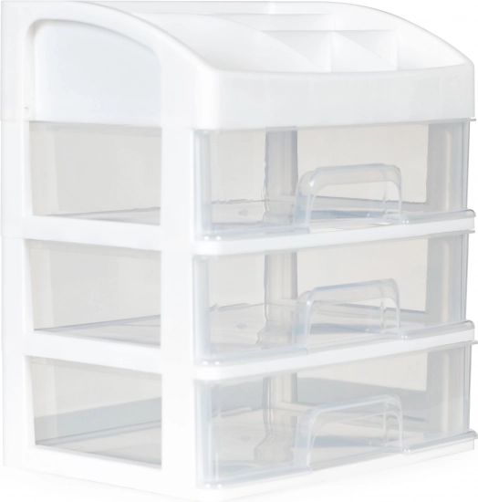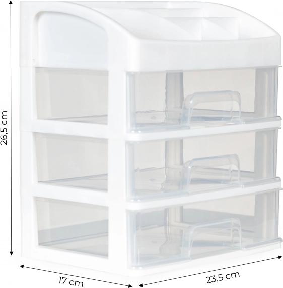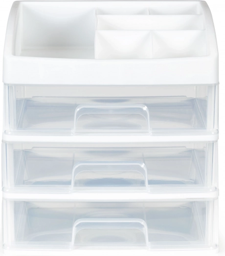 Održavajte svoju kozmetiku organiziranom i preglednom uz naš elegantni bijeli plastični organizator. Njegova praktična konstrukcija nudi nekoliko pretinaca i tri prozirne ladice u koje možete lako spremiti razne sitnice.