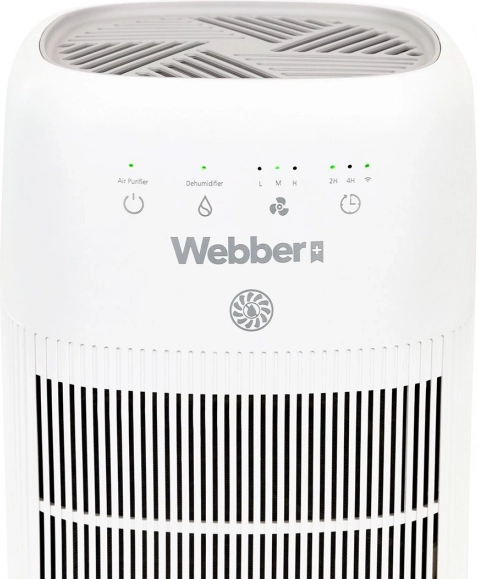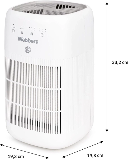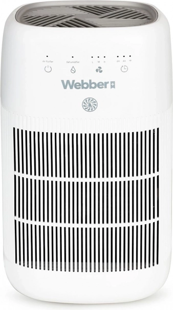 Webber odvlaživač i pročistač zraka kombinira modernu tehnologiju PureAir s učinkovitim odvlaživanjem, pa u interijeru smanjuje vlagu, ograničava nastanak plijesni i zamagljivanje prozora te istodobno filtrira prašinu, alergene i neugodne mirise. Troslojna filtracija (predfiltar, ugljični filtar i HEPA 13) zadržava do 99,97 % čestica od 0,3 µm – idealno rješenje za alergičare i obitelji s djecom.